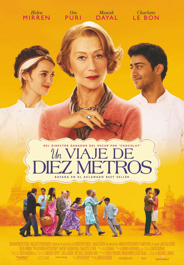 Un placer volver a estar con todos vosotros. En este mes que tenemos especiales magníficos, me gustaría hablaros de una película que me parece estupenda, Un viaje de diez metros (2014, Lasse Hallström), basada en la novela homónima de Richard C. Morais y producida por Steven Spielberg y Oprah Winfrey. La historia nos lleva a la India, donde un niño va a la compra junto a su madre, ella le enseña el arte de comprar los alimentos frescos, la cocina, conjugar todos los sabores potenciados por las especias. El niño disfruta de cada momento. Sus padres y sus hermanos forman parte de una familia que lleva un restaurante, donde hacen la comida típica de su país. Una noche deben huir porque la política y las revueltas hacen que su casa, su vida, queden destruidos en un incendio. Su madre, por volver atrás, queda presa de las llamas. La familia se va de allí, errantes. Primero se instala en Inglaterra, pero no acaba de encontrar su sitio. Y se vuelven a mudar.