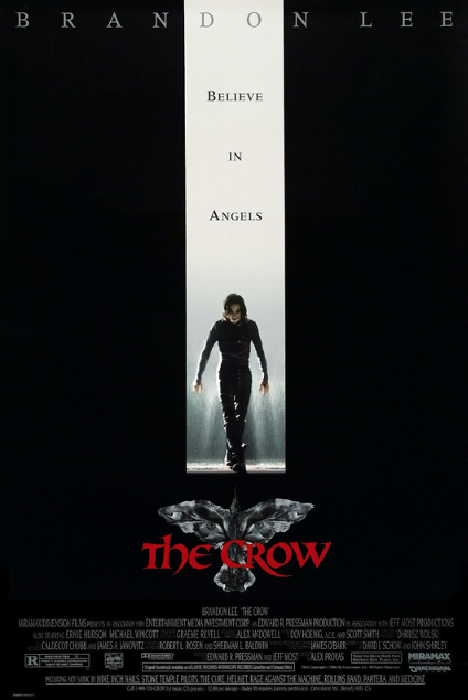 Tristemente en su  momento hubo más comentarios sobre aquella bala perdida que sobre la obra en sí. Pero el tiempo la puso en su lugar y si en el ’94 fue aclamada, con los años fue venerada. En la actualidad, hallamos numerosas referencias iconográficas de esta obra de culto. El argumento es sencillo, una joven pareja es brutalmente asesinada en su piso el día de los muertos, en Halloween, fecha  a su vez elegida para celebrar su boda. Un año más tarde, pero el día anterior, conocido como  la noche del diablo, un cuervo trae a Eric, el novio, de vuelta a la vida, para juntos llevar a cabo su  venganza. El cuervo es su animal totémico, convierte al joven en inmortal. Animal y hombre forman un binomio indestructible; el chico ve lo que ve el cuervo y éste absorbe el daño que puedan infligir a Eric.