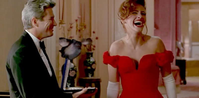 Chocante nuevamente, que emitan esta película ahora que tanto y tan machaconamente se insiste en la crisis económica, un filme en el que tan sólo se propugna el consumo, sea éste del tipo que sea. Los protagonistas gastan una indecente cantidad de dinero al tiempo que Roy Orbison pone ritmo a una práctica de probador que repetirán cientos de filmes, desde Cuatro bodas y un funeral a La boda de mi novia. Los restaurantes son los más caros, los modelos y sus tiendas de una exclusividad aterradora; las prostitutas se asignan astros del paseo de las estrellas y se embriagan con la Traviata. Todo es sensacional, todo es resplandeciente. Pero la vida real no lo es, no lo fue la de Vivian ni la del resto de los mortales. El sueño consumista de los noventa, germen de las desmesuras de nuestro nuevo milenio, se fue abriendo paso en las conciencias de los espectadores hasta convertir el sueño americano en un sueño global. Todos querían ser Vivian, todos esperaban que les rescatasen.